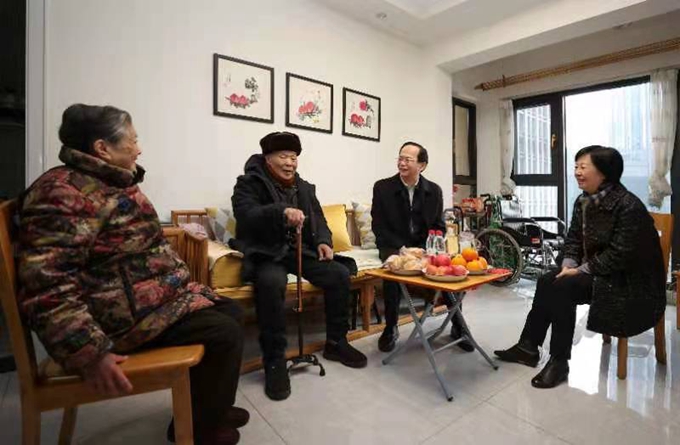 1月29日,中國五冶集團黨委書記、董事長朱永繁,黨委副書記、工會主席周悅靜一行先后看望慰問了96歲高齡的建國前老黨員、離退休干部陳國昇和王法有兩位老人,向他們致以新春問候,祝愿他們節(jié)日愉快、健康長壽。