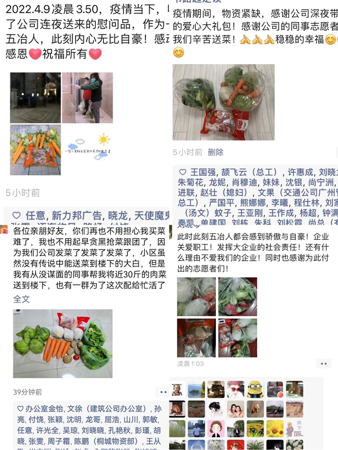 “感謝你們記掛退休的老員工,雪中送炭帶來蔬菜和肉,作為家屬沾光了。也請你們做好防護,照顧好自己哦!再次感謝!”