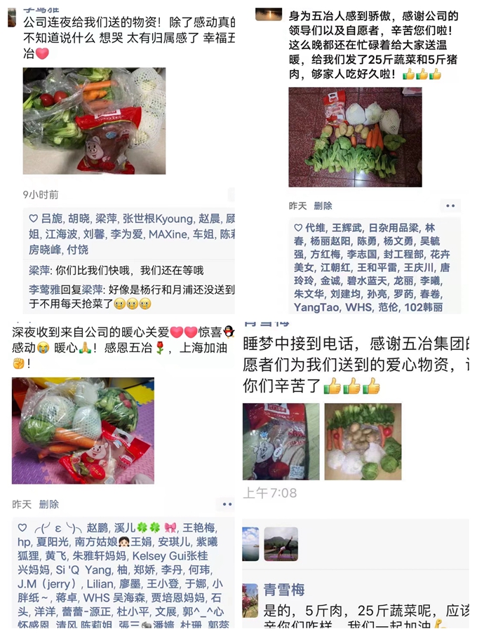 “凌晨兩點半收到志愿者送的物資,雪中送炭,感謝公司!”