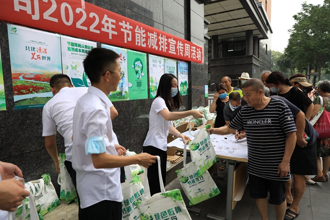為市民發(fā)放節(jié)能減排禮品袋