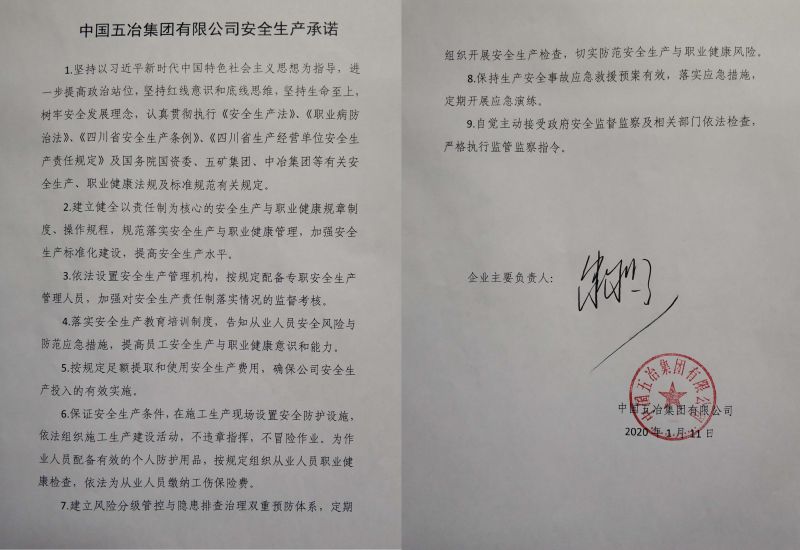 中國五冶集團有限公司2020年安全生產(chǎn)承諾