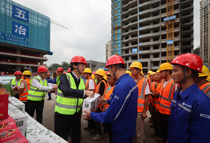 朱永繁董事長一行先后來到宜賓起步廣場、檬子灣安置房、三江新區(qū)大健康醫(yī)療產(chǎn)業(yè)補短板、三江之眼、高新區(qū)產(chǎn)業(yè)新城標(biāo)準(zhǔn)廠房,成都新都區(qū)三河保障性租賃住房、香悅置業(yè)同仁村42畝房地產(chǎn)開發(fā)等7個項目現(xiàn)場,仔細檢查安全生產(chǎn)工作落實和執(zhí)行是否到位,詳細了解項目策劃、工期、技術(shù)、質(zhì)量、經(jīng)營等管理情況,并向一線員工送上牛奶、面包、果汁、方便面、礦泉水等慰問品,對大家在節(jié)日期間堅守崗位、辛勤工作表示問候。