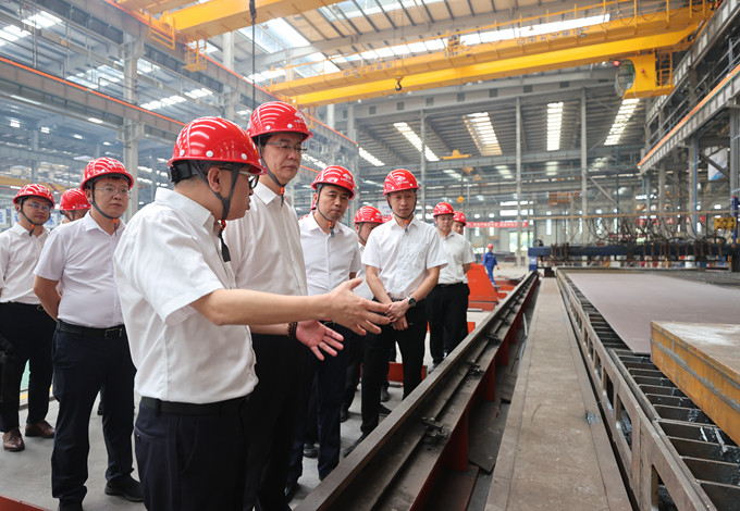 朱永繁董事長一行走進五冶建筑科技產(chǎn)業(yè)園現(xiàn)場,實地察看鋼結(jié)構(gòu)智能化生產(chǎn)線建設(shè)推進情況,詳細(xì)了解相關(guān)生產(chǎn)工藝流程、質(zhì)量安全控制、成品特點及工廠運營狀況。在隨后召開的座談會上,鋼構(gòu)公司相關(guān)負(fù)責(zé)人匯報了建筑科技產(chǎn)業(yè)園、中冶交投善筑及五冶鋼構(gòu)有關(guān)生產(chǎn)經(jīng)營情況、問題困難以及需幫扶事項,參會領(lǐng)導(dǎo)針對存在問題、建議和意見進行了討論。
