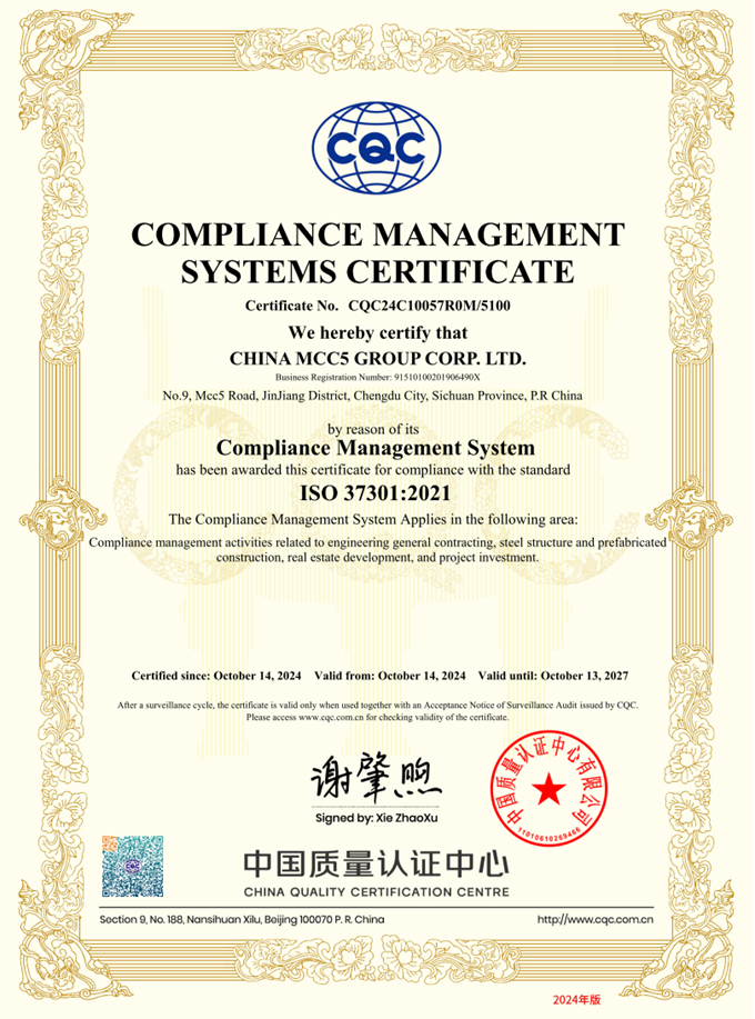 近日,中國五冶集團(tuán)獲得由中國質(zhì)量認(rèn)證中心頒發(fā)的GB/T 35770-2022/ISO 37301:2021合規(guī)管理體系認(rèn)證證書,標(biāo)志著公司合規(guī)管理水平全面達(dá)到國內(nèi)、國際標(biāo)準(zhǔn)要求,合規(guī)管理體系建設(shè)邁上新臺(tái)階。