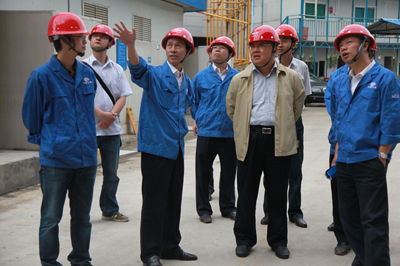 程并強深入現(xiàn)場詳細詢問了工程概況以及目前工程的進展情況,在聽取了工程介紹后,對項目部所作的工作給予了肯定,尤其是在仔細查看了公司自己設(shè)計的西南最遠第一懸挑:即懸挑最遠處為27.8米,最大單重18噸的構(gòu)件后非常滿意。