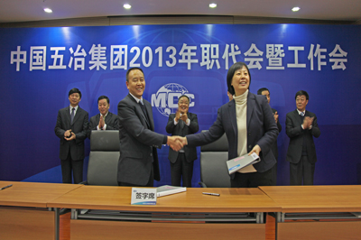 會(huì)議期間,集團(tuán)公司職工首席代表、工會(huì)主席周悅靜與集團(tuán)公司首席代表、董事、總經(jīng)理蒙昌嘉簽訂了《中國(guó)五冶集團(tuán)2013年度職工工資集體協(xié)議》,公司董事長(zhǎng)、黨委書記程并強(qiáng)與公司董事、總經(jīng)理蒙昌嘉簽訂了《經(jīng)營(yíng)承包責(zé)任書》,公司董事、總經(jīng)理蒙昌嘉與副總工程師唐世榮簽訂《新技術(shù)產(chǎn)品經(jīng)營(yíng)管理責(zé)任書》、與四川地區(qū)各分子公司經(jīng)理簽訂了《經(jīng)營(yíng)承包責(zé)任書》。