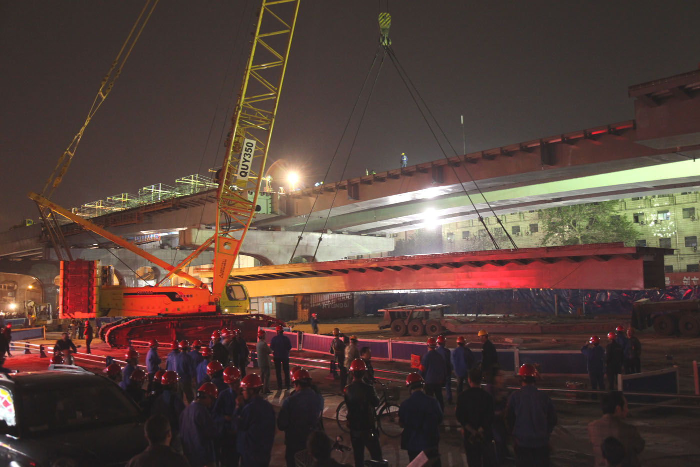 成溫路最后一片鋼箱梁吊裝現(xiàn)場(chǎng)