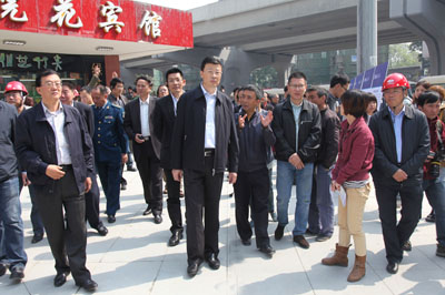 成都市人大常委會(huì)主任于偉一行詳細(xì)了解了成溫路改造工程的進(jìn)展情況,對(duì)中國五冶集團(tuán)在晚開工四個(gè)月的情況下能克服困難,迎頭趕上,予以肯定。他說:“兩快兩射”工程是市委實(shí)施“交通先行”戰(zhàn)略的標(biāo)志性工程,更是方便廣大市民出行的民心工程、民生工程。工程建設(shè)時(shí)間緊,施工工藝復(fù)雜,中國五冶集團(tuán)作為具有相當(dāng)實(shí)力的大型央企,一定能確保項(xiàng)目按時(shí)優(yōu)質(zhì)圓滿完成。
