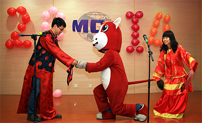 活動上,曲藝、小品、獨唱、歌舞表演等節(jié)目精彩紛呈,為現場觀眾們送上了節(jié)日的祝福。由2位小觀眾和其他6位大觀眾表演的互動游戲“蘿卜蹲”,孩子的天真童趣、獨具一格的表演形式,瞬間就把現在的氣氛引向了高潮。在傳統(tǒng)曲藝節(jié)目《三句半》中,幽默的語言、滑稽的表演,引起了現場陣陣掌聲。歌曲獨唱《最初的夢想》、《至少還有你》,小品《碰瓷》,歌伴舞《歡天喜地過大年》等節(jié)目,精彩的演藝、風趣的表演,讓現場的觀眾開懷大笑,高潮不斷。雖然時間倉促、節(jié)目準備不是很充分,但是快樂并沒有因此打折扣,現場觀眾都沉浸在了快樂、熱鬧的氛圍之中。