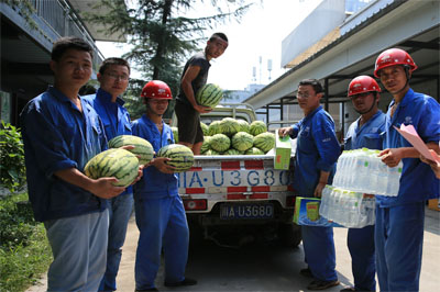 近來(lái),四川地區(qū)連日高溫,廣大職工仍堅(jiān)守在施工一線。7月27日,集團(tuán)公司工會(huì)受集團(tuán)公司黨政領(lǐng)導(dǎo)委托,在四川地區(qū)施工現(xiàn)場(chǎng)開展了高溫慰問(wèn)送清涼活動(dòng),為一線職工送去了慰問(wèn)信以及涼茶、西瓜、礦泉水等慰問(wèn)品。首批慰問(wèn)了新華之星項(xiàng)目、華新美廬項(xiàng)目、藍(lán)光COCO國(guó)際項(xiàng)目、博覽城項(xiàng)目等地,送上了黨政領(lǐng)導(dǎo)的關(guān)愛和慰問(wèn)。