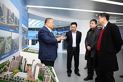 程并強在集團陳列室向李成剛介紹公司綜合優(yōu)勢