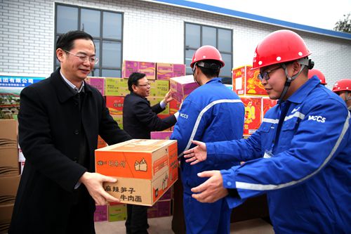 2月9日,譚興山來先后到四公司南充博物館項目、一公司南充濱江路、路橋公司南充高鐵商務(wù)區(qū)項目及一公司綿陽會展中心項目,進(jìn)行慰問。在項目現(xiàn)場,他轉(zhuǎn)達(dá)了集團(tuán)公司董事長、黨委書記程并強(qiáng)對項目一線員工的問候,為項目管理人員及一線作業(yè)人員送去了餅干、礦泉水、方便面和牛奶,并致以新春的祝福,同時要求項目部做好假期施工進(jìn)度計劃安排,提升工程質(zhì)量,確保順利履約,展現(xiàn)五冶形象。