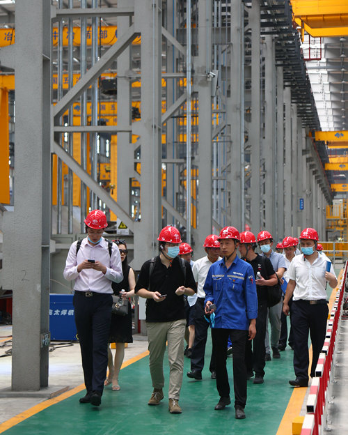隨后,考察團(tuán)一行現(xiàn)場(chǎng)參觀了中國(guó)五冶已建成投產(chǎn)的先進(jìn)的PC及鋼結(jié)構(gòu)生產(chǎn)廠,對(duì)有關(guān)產(chǎn)品、產(chǎn)能、市場(chǎng)占有率、技術(shù)、成果等進(jìn)行了詳細(xì)深入的了解,目睹了國(guó)內(nèi)最大最先進(jìn)的鋼板預(yù)處理生產(chǎn)線、國(guó)內(nèi)最先進(jìn)的數(shù)控切割機(jī)、國(guó)際領(lǐng)先水平的自動(dòng)化焊接機(jī)器人、業(yè)內(nèi)最大的矯正機(jī)等“高精尖”先進(jìn)設(shè)備,對(duì)映入眼前的現(xiàn)代化、高水平的產(chǎn)業(yè)園區(qū)所嘆服,紛紛點(diǎn)贊中國(guó)五冶的綜合實(shí)力,并表示建筑科技產(chǎn)業(yè)園的技術(shù)實(shí)力和裝備水平達(dá)到了國(guó)內(nèi)和行業(yè)一流,通過技術(shù)驅(qū)動(dòng)高質(zhì)量建造,打造裝配式全產(chǎn)業(yè)鏈優(yōu)勢(shì),從而占領(lǐng)未來建筑發(fā)展高地,這種理念和思路具有很強(qiáng)的前瞻性,集中體現(xiàn)和展示了五冶一流的建造方式、商業(yè)模式和工程總承包實(shí)力。