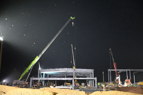 為將現(xiàn)場(chǎng)效能提升到極致,集團(tuán)、分公司、項(xiàng)目部三級(jí)“戰(zhàn)隊(duì)”發(fā)揮精細(xì)化管控優(yōu)勢(shì),對(duì)現(xiàn)場(chǎng)急于施工的土建、鋼構(gòu)、市政園林三個(gè)專業(yè)分設(shè)七個(gè)區(qū),通過策劃與部署結(jié)合、管控與調(diào)度搭配,保證多個(gè)工序平行施工、見縫插針、多點(diǎn)開花。同時(shí),依托五冶自身裝配式建造的巨大優(yōu)勢(shì),項(xiàng)目建設(shè)過程中90%以上應(yīng)用裝配式技術(shù),實(shí)現(xiàn)了工廠生產(chǎn)和現(xiàn)場(chǎng)裝配“兩頭熱”,在24小時(shí)輪班作業(yè)中創(chuàng)造出生產(chǎn)效率和履約速度的新高峰。