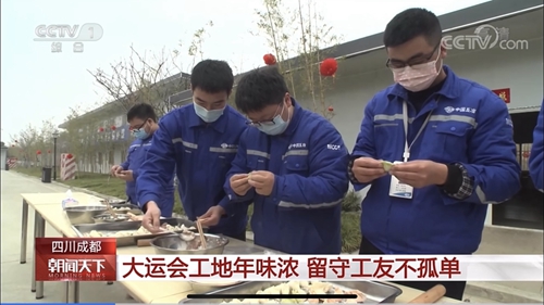 2月14日,大年初三,央視綜合頻道《朝聞天下》欄目以《就地過個暖心年 這群城市建設(shè)者堅守崗位不孤單》為題,報道了中國五冶大運會東安湖生態(tài)公園項目在大年三十組織留守員工齊聚食堂籌備餃子宴,在歡笑與佳肴中幸福團年的場景。報道指出,東安湖項目部在備足年飯、年貨之余,還為大家發(fā)放疫情補貼,送上“過節(jié)禮包”,并現(xiàn)場組織大家開展掛燈籠、寫對聯(lián)等豐富多彩的活動,讓留守成都大運會建設(shè)一線的兄弟姐妹們度過一個溫馨、祥和的春節(jié)。