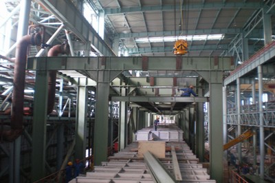 上海技改公司承擔(dān)的三期寶鋼硅鋼項(xiàng)目中是工作量最大的一條機(jī)組,任務(wù)重,工期緊。目前,機(jī)組正處于設(shè)備安裝高峰階段,項(xiàng)目部科學(xué)統(tǒng)籌,合理安排工序,克服高溫影響,出口段設(shè)備基本安裝完畢;烘烤爐已進(jìn)入耐材砌筑階段;前后清洗段槽體設(shè)備就位完畢,為清洗段配管工作創(chuàng)造好了條件;現(xiàn)在正在努力推進(jìn)退火爐爐子鋼結(jié)構(gòu)平臺(tái)的安裝,為8月上旬進(jìn)行退火爐安裝創(chuàng)造條件。