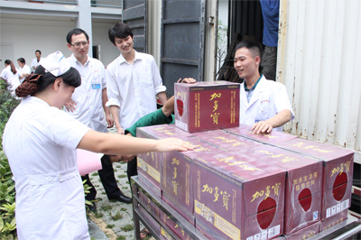 圖為醫(yī)院工會發(fā)放清涼飲料慰問一線員工